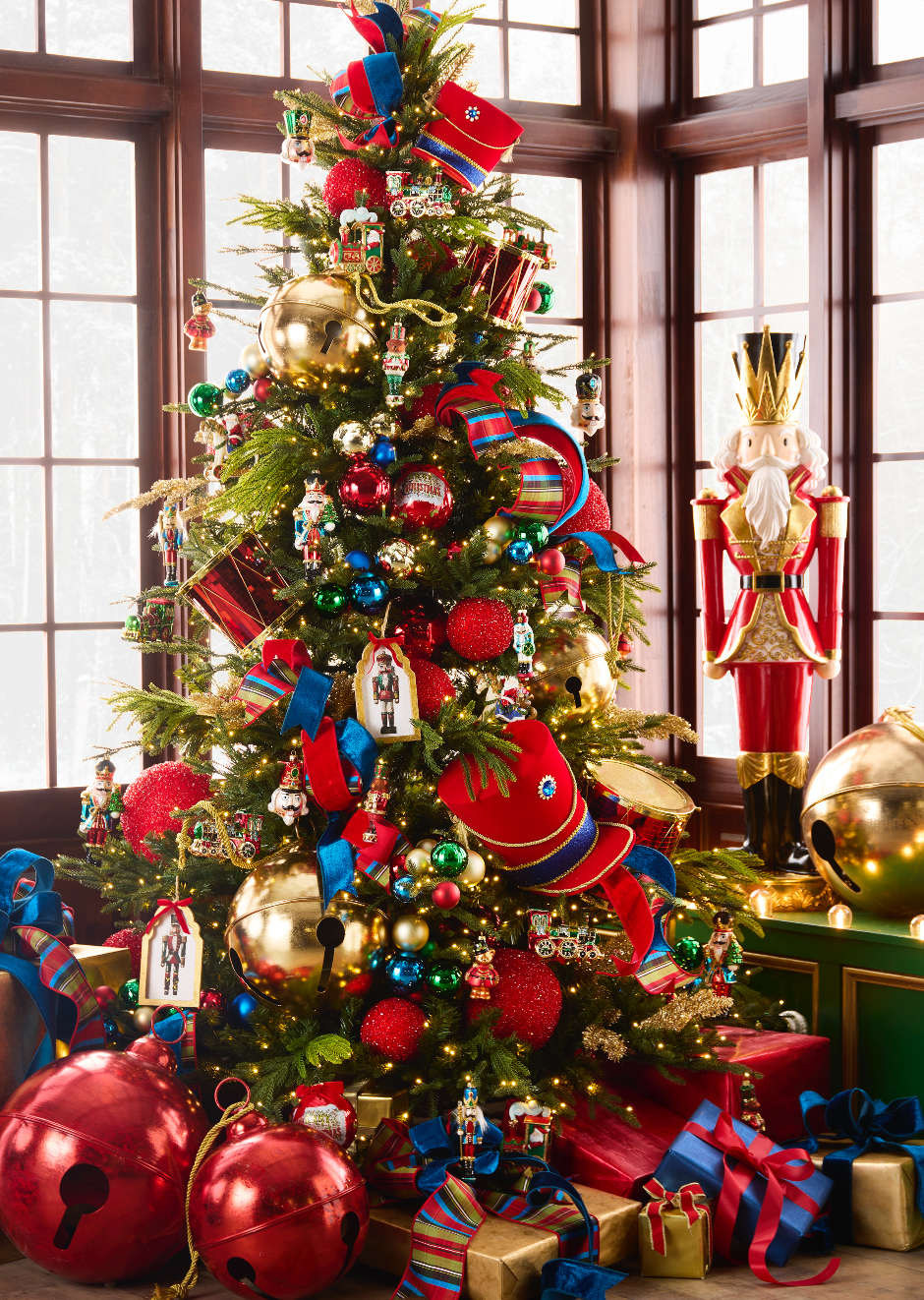 Nutcracker Paradecelebra la alegría y el color de la Navidad con un estilo inspirado en los desfiles festivos. Entre cascanueces, tambores, trenes y cascabeles dorados, esta colección combina tonos rojos, azules y doradospara crear una decoración vibrante, elegante y llena de espíritu navideño.
