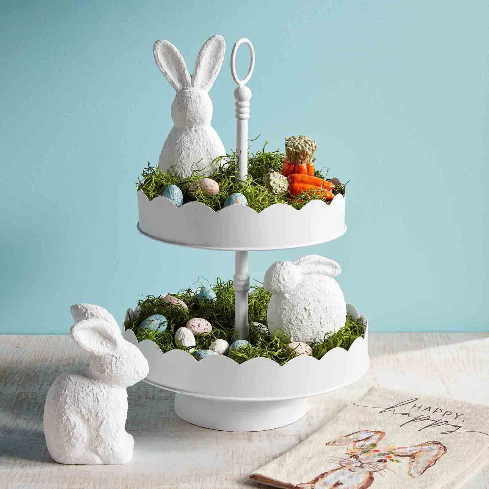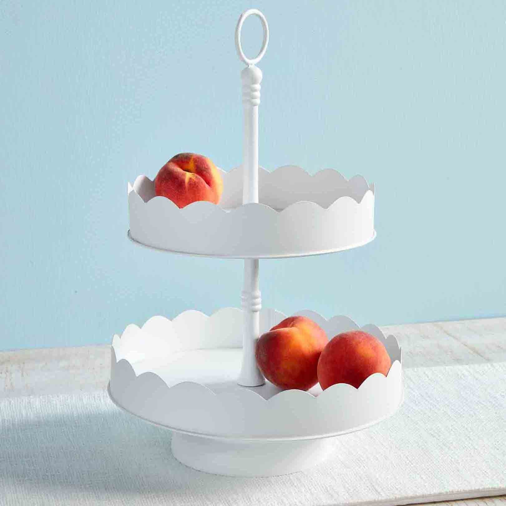 Base de dos pisos de metal blanca con orilla