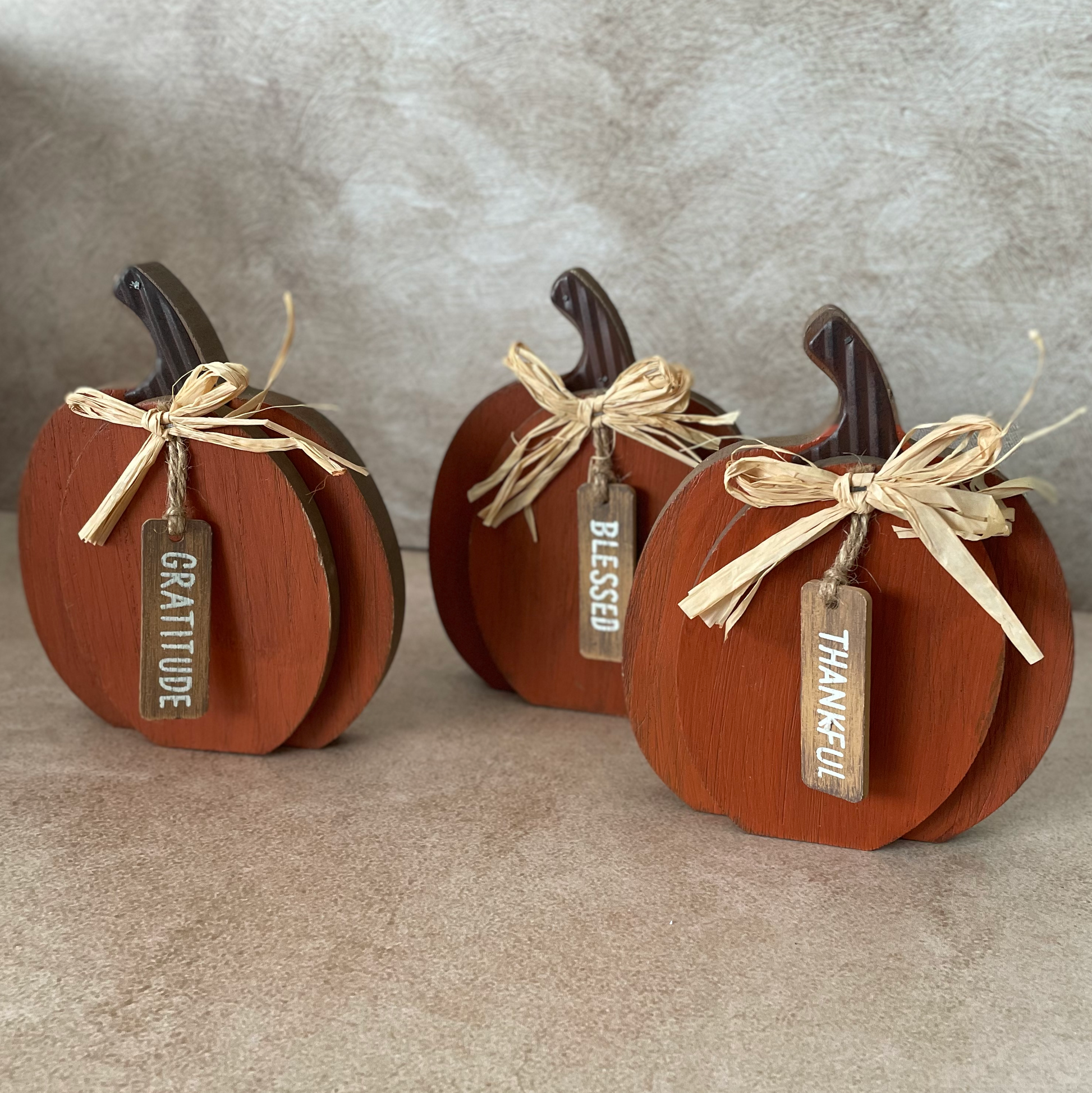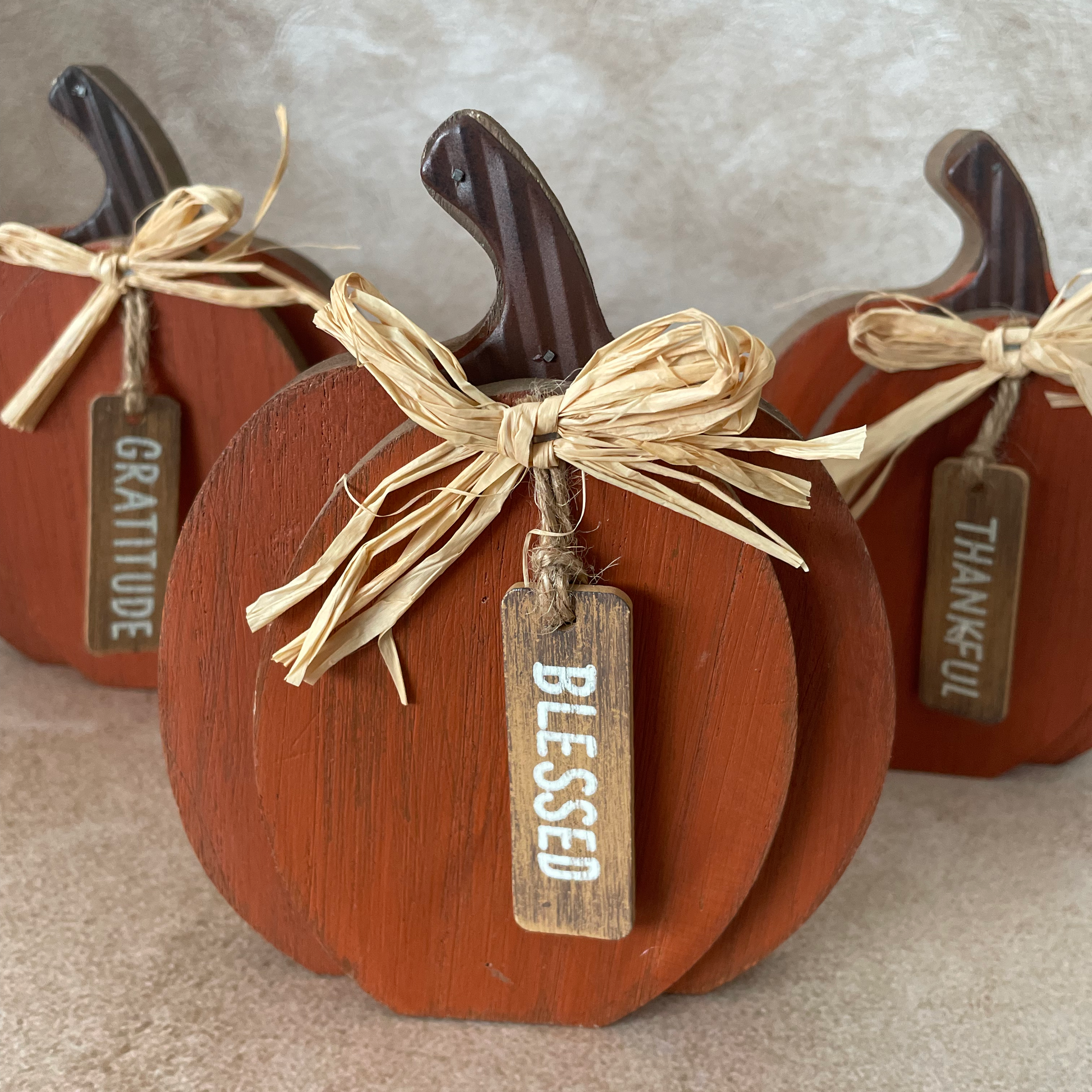 Calabazas anaranjadas de madera grateful thankful blessed