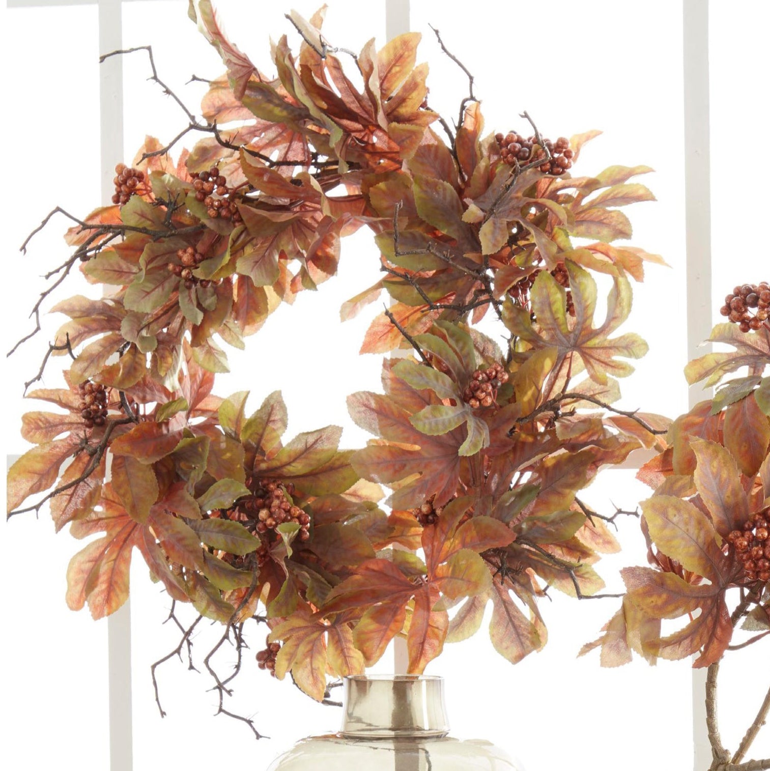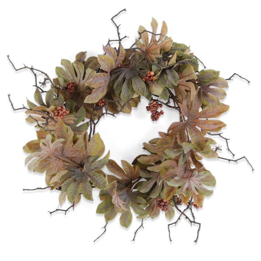 Corona Otoñal De Planta De Papel De Arroz Multicolor Con Bayas De 61 Cm