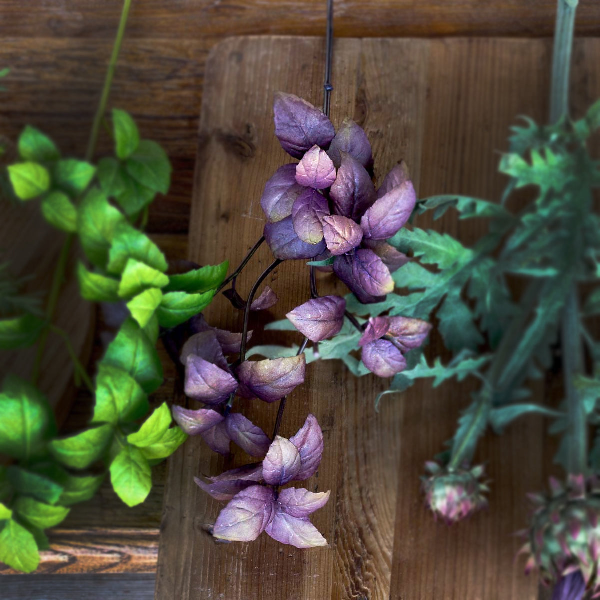 Rama de hoja de albahaca morada